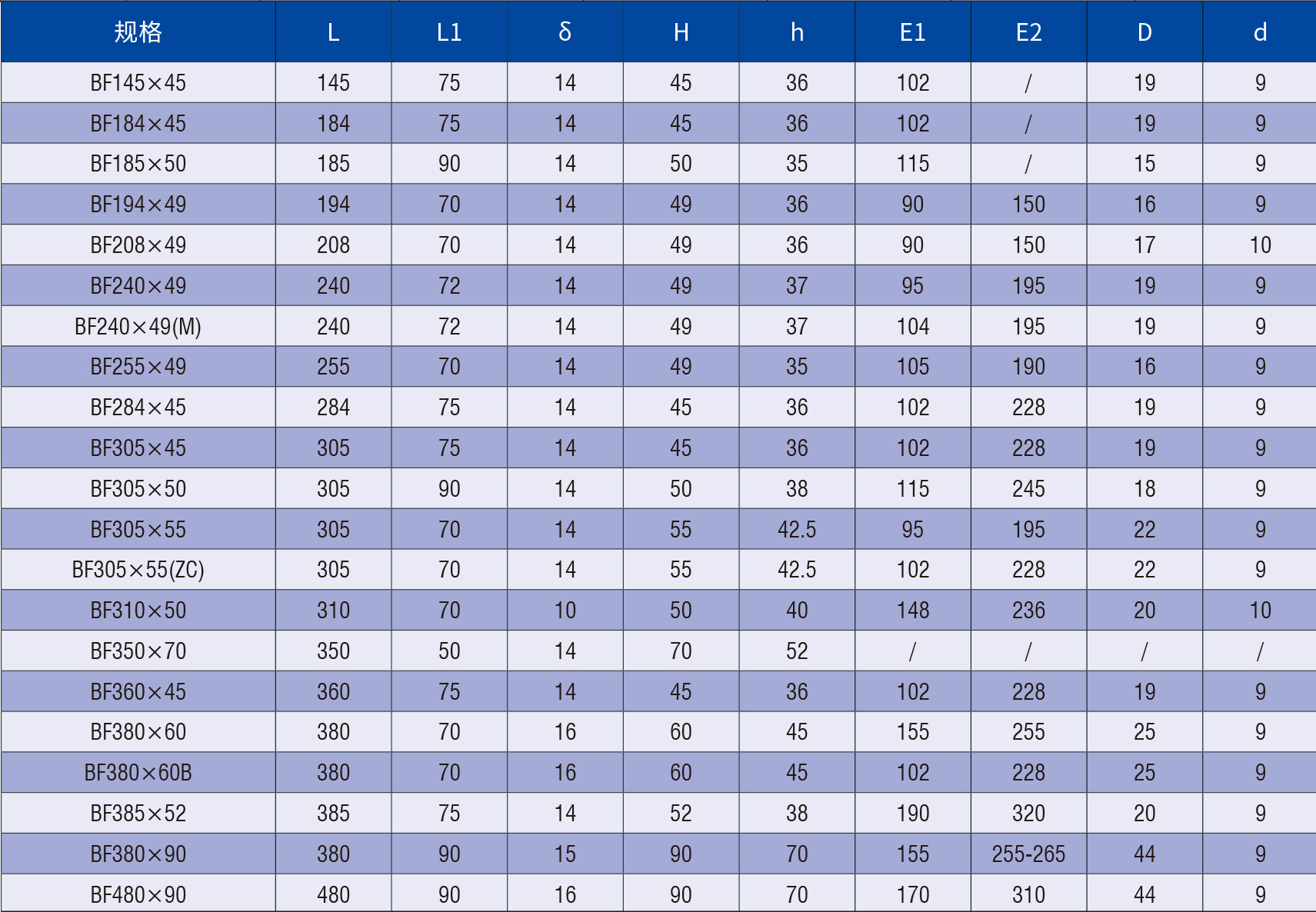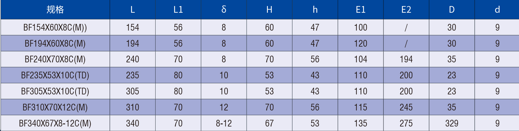 超高分子量聚乙烯埋刮板(BF)規(guī)格表
