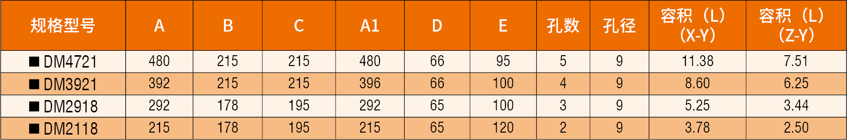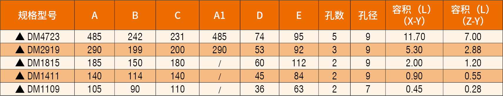 備注:上述五個(gè)加“▲”的規(guī)格,安裝孔凸臺(tái)及背部流道的擋邊下端特別加高。