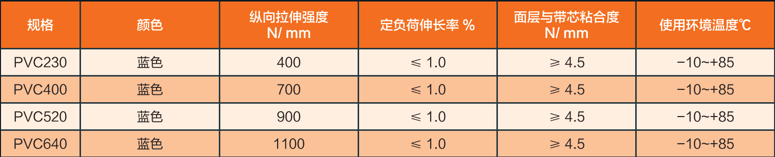 4、帶體上下表面均為毛面,有良好的過輥性能,能保持較好的運(yùn)行軌跡,不易跑偏。
