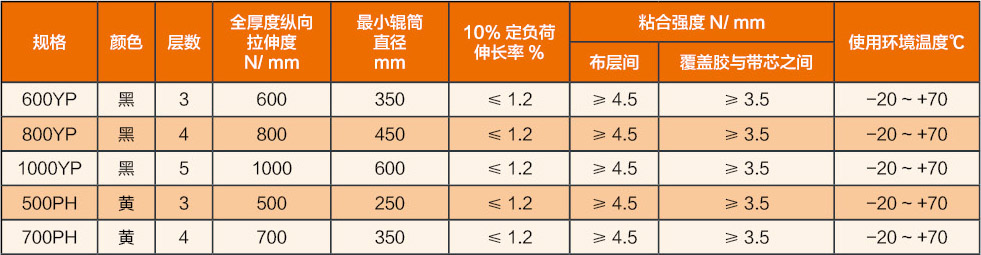 骨架材料選用低收縮、高卷曲度的合成聚酯纖維浸膠帆布,采用抗靜電橡膠配方,是糧食及食品行業(yè)應(yīng)用廣泛的橡膠提升帶。