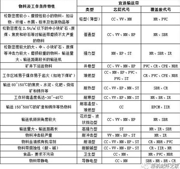 3.2.輸送帶類型及適應工作條件:(見下表)